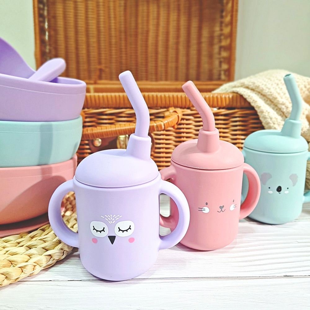 - 1 x Animal Sippy Straw Cup with Handles (120ml): Comes with lid and straw to prevent spills.